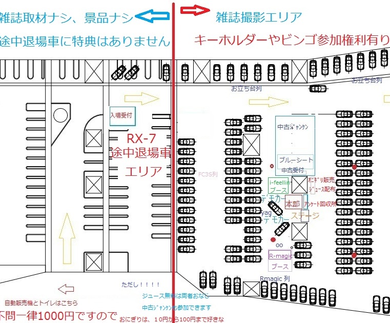 メイン駐車場で不慮の場合は全部のイベントを司会者が停止、