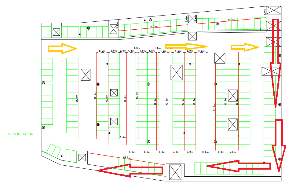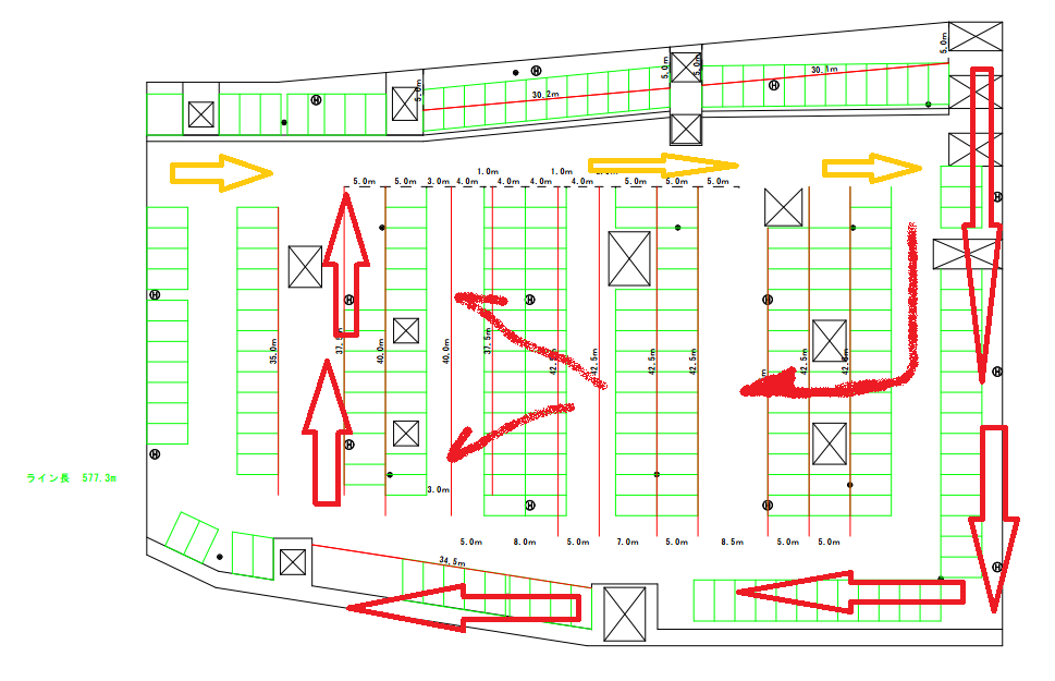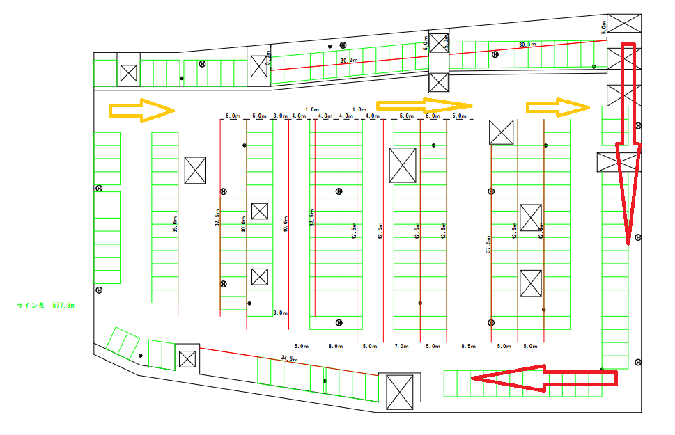 矢印が点灯した順番に車を入れてゆきます