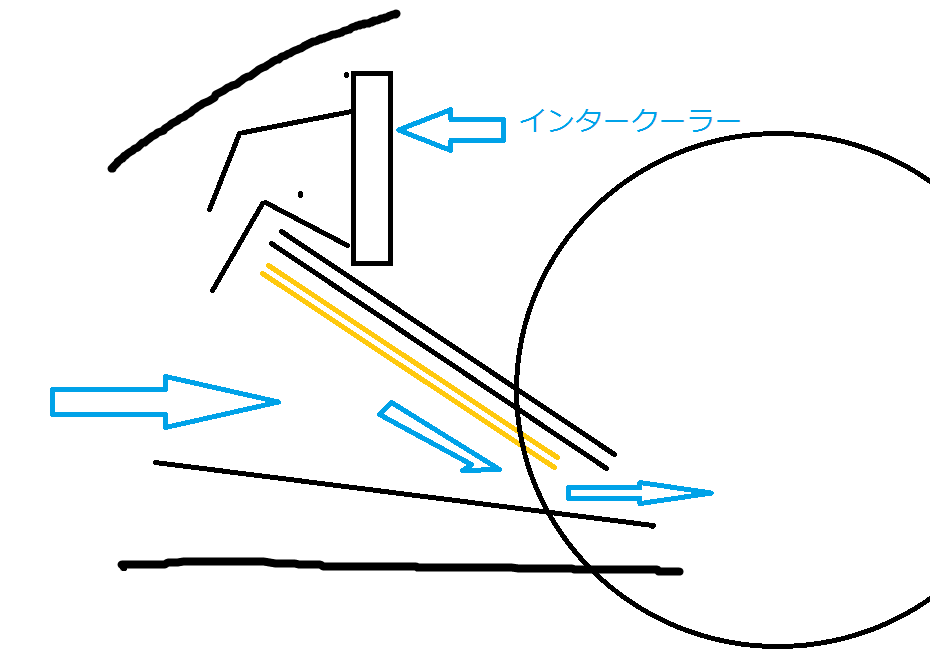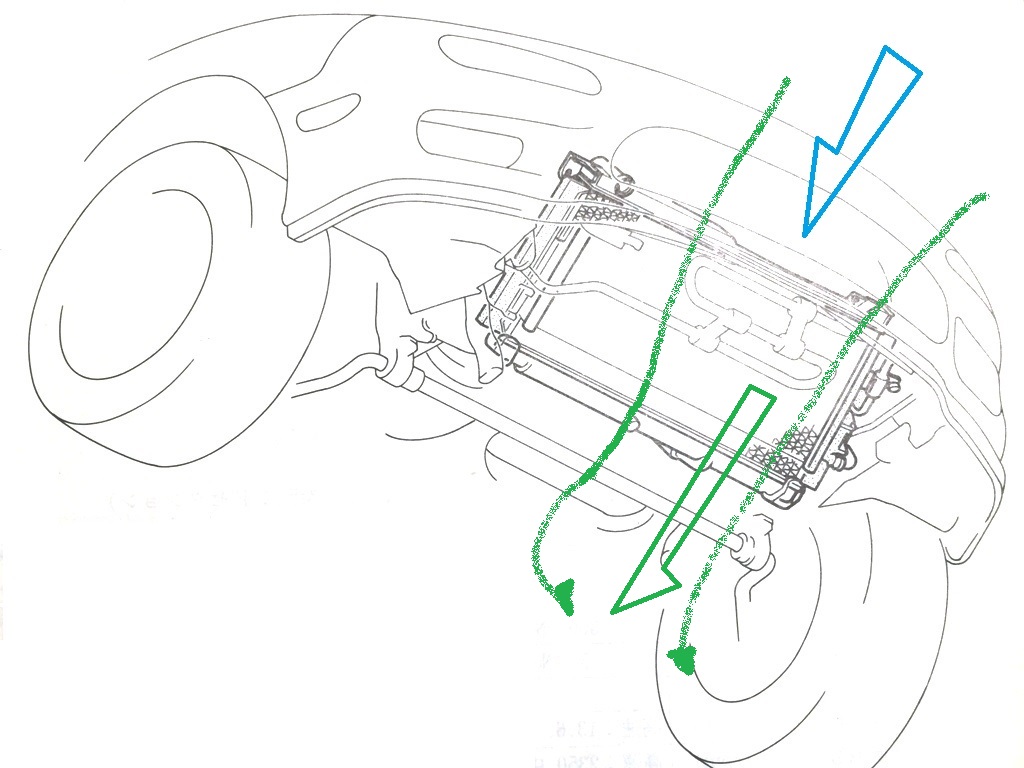 やっぱりラジエターに風が曲がらず、そのまま車両の下に抜けてしまうんだ。