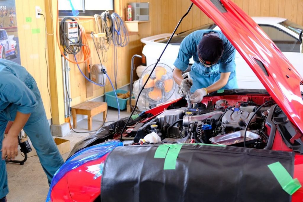 現在、RX-7 FCがシフトの修理でご来店されております シフトの調子が悪く ミッションを降ろしてましたが 本日、取り付けしました 取り付けた後は マフラーを取り付けていき~す ゴリさんが取り付けてますよ~ ここも締めて~ 締め漏れが無いか最終チェック中~...
