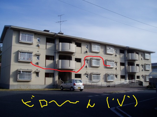 引っ越してきた家の、2軒隣なので(団地)、電線で家と家を結んで(2軒隣@~@)